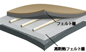 床面への放熱を抑制する高断熱フェルト層により、節電をサポートします 。