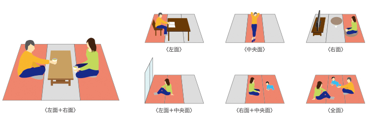 1. 暖めたい場所を選び電気代のムダを抑える「暖房面積3面7通り切り換え(注1)」機能