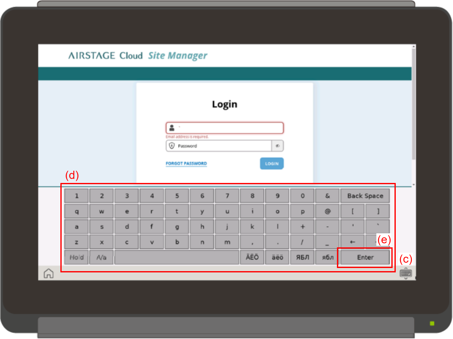 - Tap the input area (b) on the touch screen of the AIRSTAGE Edge Controller.