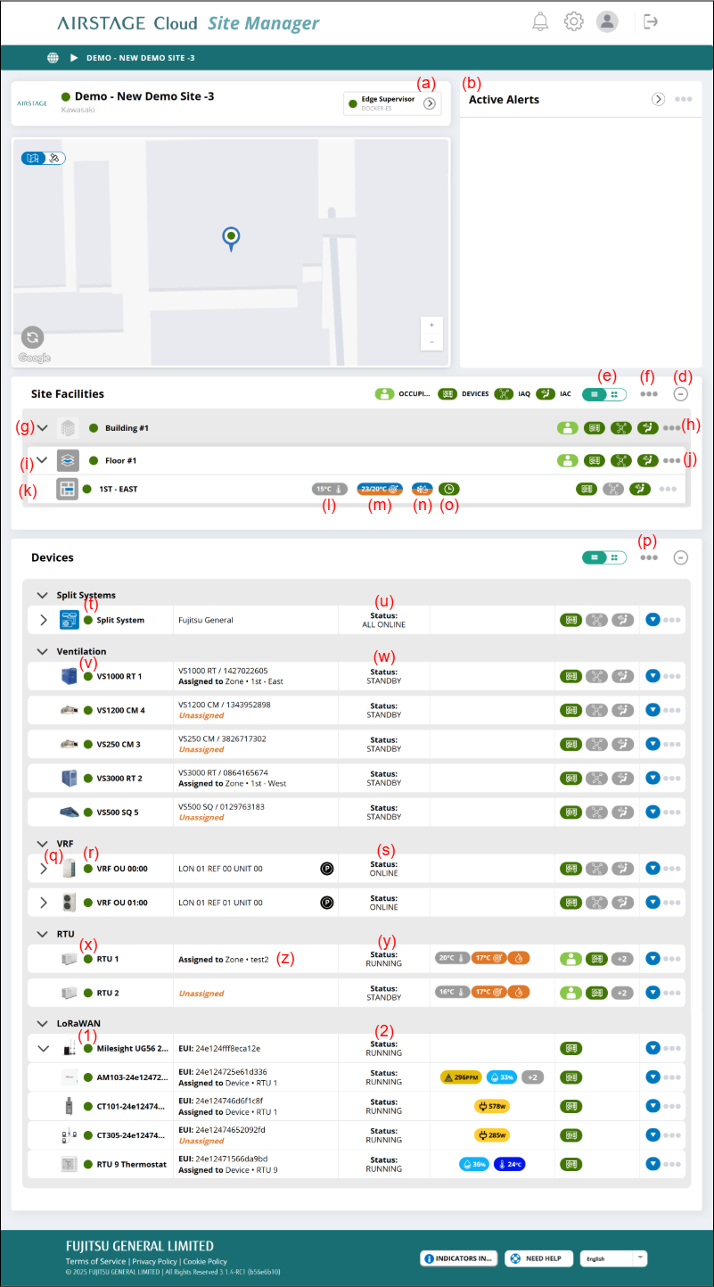 Active alerts for the Site are shown as necessary. Refer to "Alert and notification" for details.
