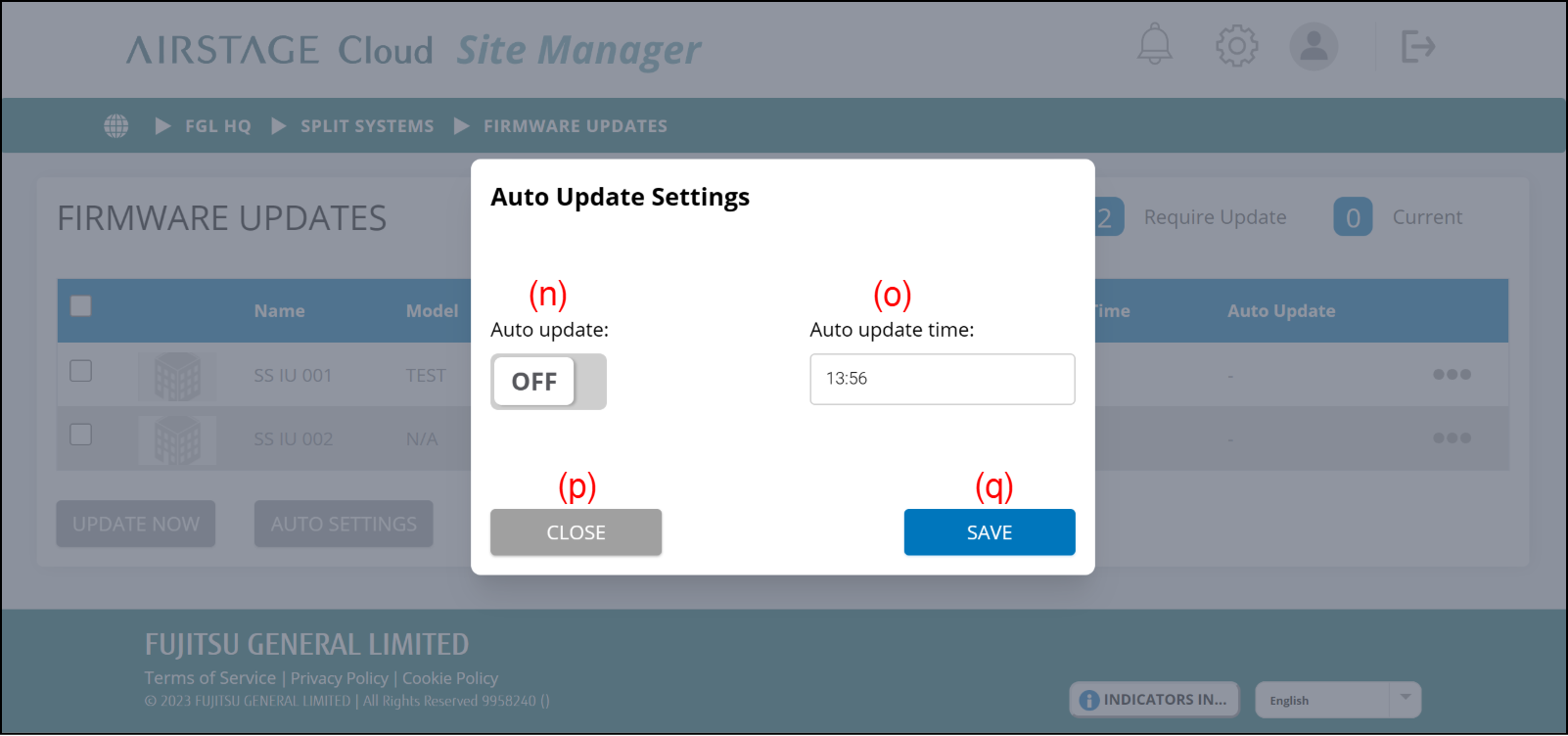 - Check the checkboxes of the indoor units for which you want to set Auto Update.