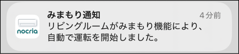 エアコンのリモコンや他のユーザーによる運転/停止操作をプッシュ通知でお知らせします。