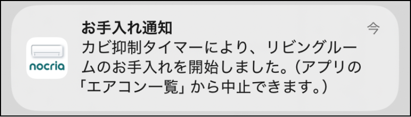 エアコンの「まるごとクリーンタイマー」「カビ抑制タイマー」を設定すると、機能が動作したことをプッシュ通知でお知らせします。