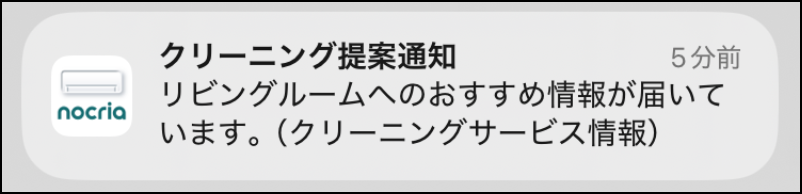 シーズン前の点検運転のおすすめやクリーニングサービス情報が通知されます。