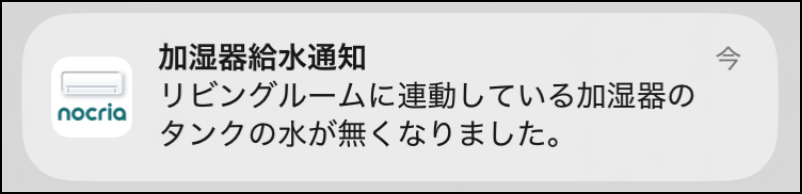 エアコンと連動してる加湿器に給水やお手入れが必要になると、プッシュ通知でお知らせします。
