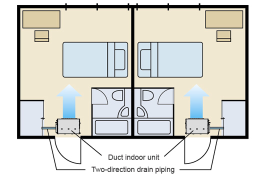 Das flache und kompakte Design der Inneneinheit mit seitlich montierter Steuerungseinheit ermöglicht eine Installation bei geringen Platzverhältnissen.