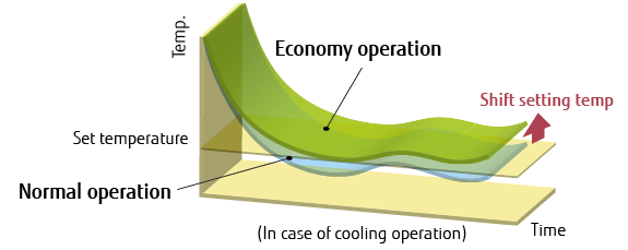 Die Solltemperatur steigt (im Kühlbetrieb) oder sinkt (im Heizbetrieb) automatisch um 1 °C, um Energie zu sparen.
