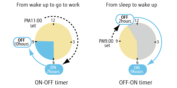 Sie können die Ein-/Ausschaltzeiten und Aus-/Einschaltzeiten an Ihren Lebensstil anpassen. (Wählbare Intervalle: 0,5, 1, 1,5, 2, 2,5 ... 9,5, 10, 11, 12 Stunden)