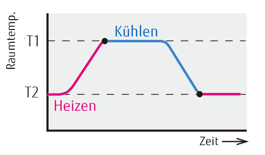 Der Automatikbetrieb, bei dem die Klimaanlage automatisch zwischen Kühl- und Heizbetrieb umschaltet, wird durch die Kombination des Sensorschalters und eines externen Schaltcontrollers ermöglicht.