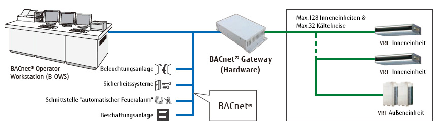 - BACnet® Gateway ist das Bindeglied zwischen einer GLT unseren VRF Systemen