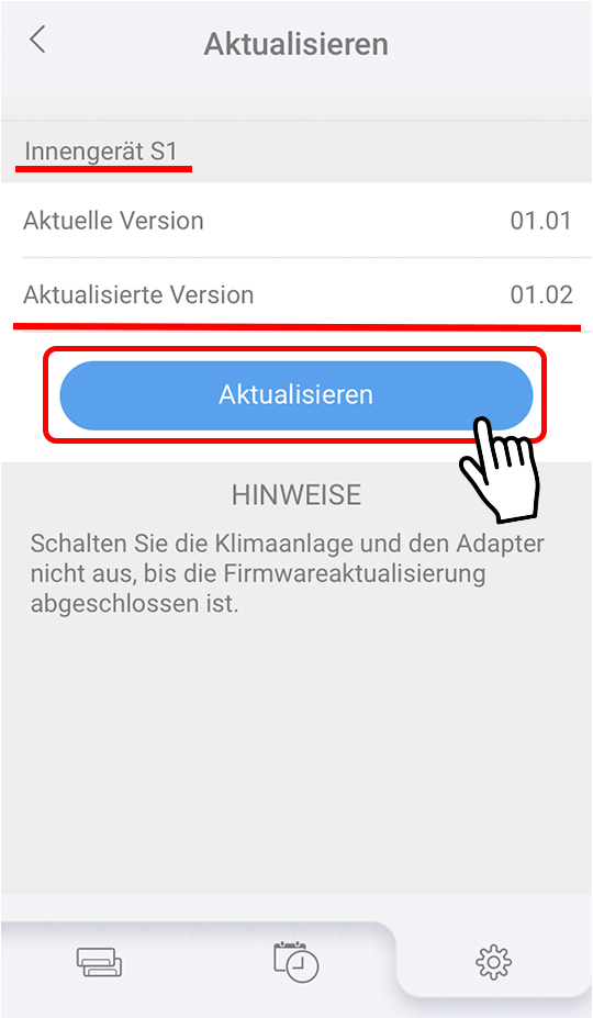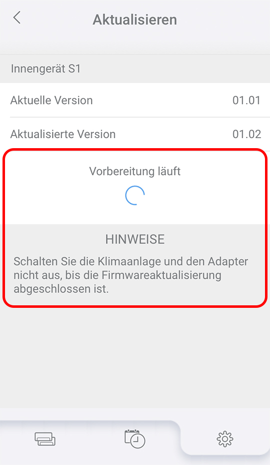 Schalten Sie die Klimaanlage nicht aus, während das Update der Firmware durchgeführt wird.