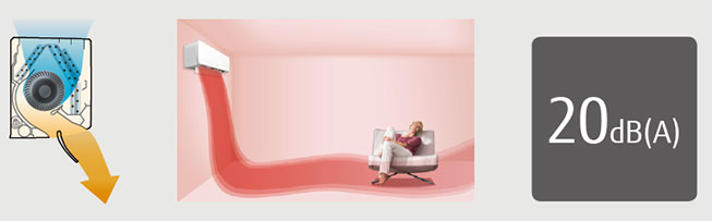 Grand déflecteur et large structure de répartition de l'air, pour un flux d'air confortable et silencieux.