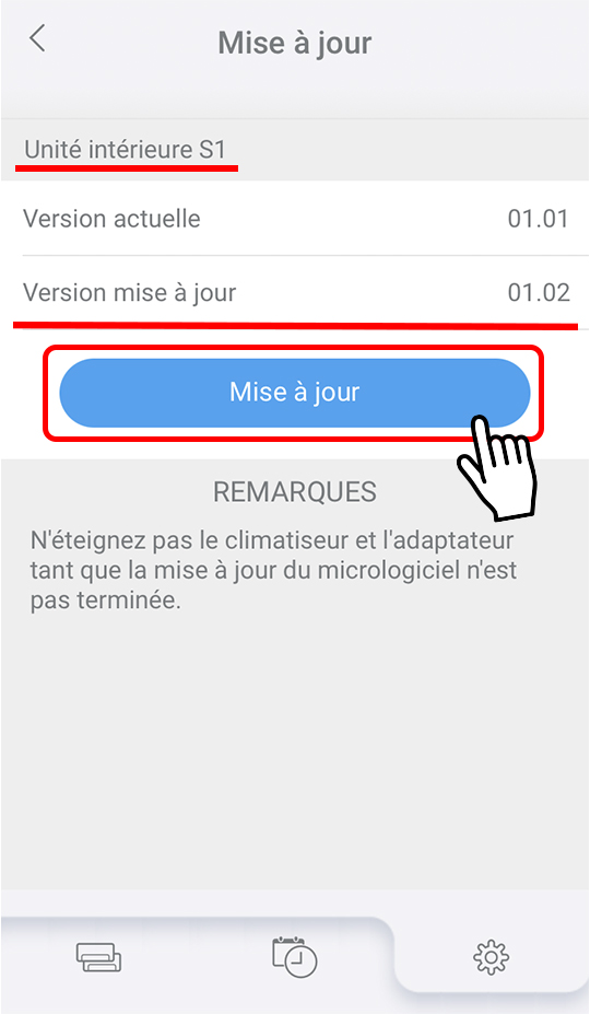- Le firmware de l'unité intérieure S1 sera mis à jour.