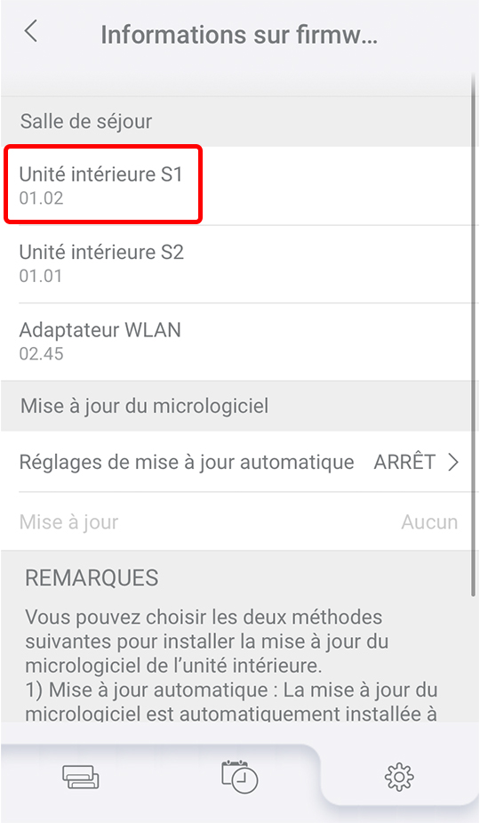 - La mise à jour ne s'applique pas au firmware de l'unité intérieure S2.