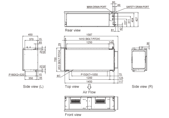 | Luchtstroomsnelheid | Koeling | Hoog | 4850 m³/h |