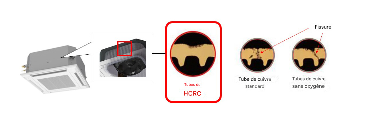 L’appareil intérieur présente une longévité accrue grâce au cuivre à haute résistante à la corrosion (HCRC) utilisé dans l’échangeur thermique.