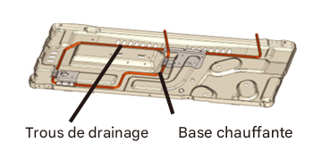 - | La base soigneusement conçue inclut de nombreux orifices qui permettent de rejeter l’eau fondue.