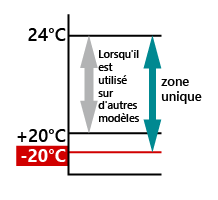 - Peut fonctionner en mode refroidissement même lorsque la température ambiante extérieure est de -18 °C, -10 °C ou 0 °C (0 °F, 14 °F ou 32 °F), selon le modèle, sans modification. Le non-respect des spécifications d’usine n’est pas recommandé.
