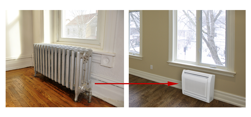 Mesurant moins de 61 cm (24 po) de hauteur et 76 cm (30 po) de largeur, les modèles à installer au sol s’adaptent facilement sous une fenêtre ordinaire et peuvent remplacer un radiateur deux fois plus grand tout en offrant une plus grande capacité.