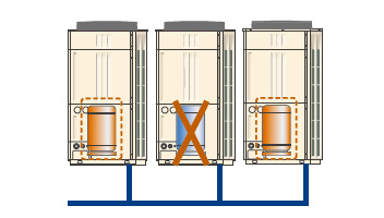 - Conditions for the maximum capacity ratio of connectable indoor units are shown in the chart above.