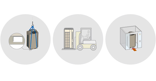 - L'unité extérieure peut être soulevée et transportée avec un chariot élévateur.