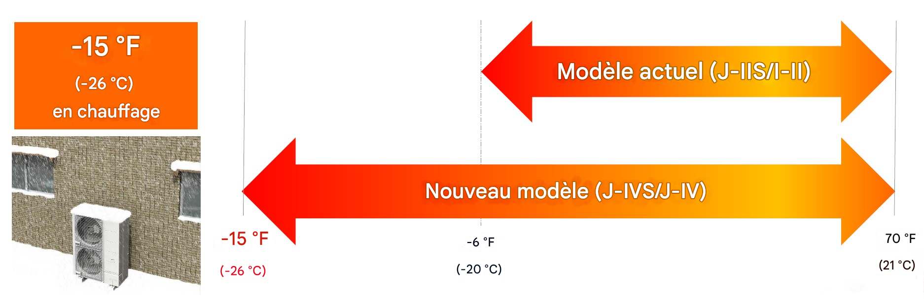 Plage étendue du mode de chauffage (J-IVS/J-IV)