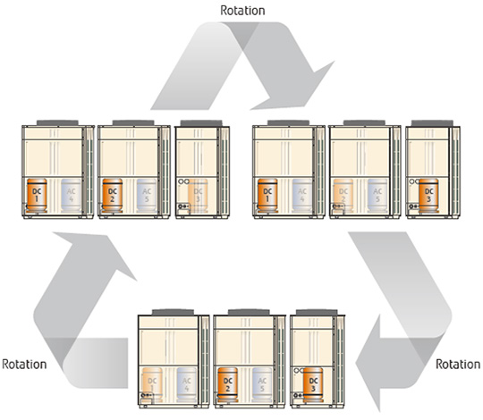 En cas de panne d'un compresseur, les compresseurs restants passent en fonctionnement de secours*2.