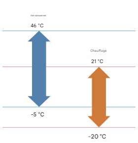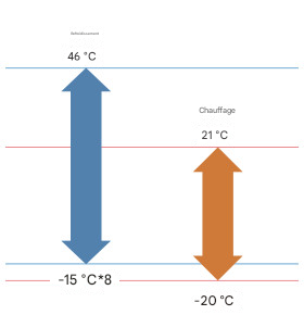 Correspond à un fonctionnement en mode chauffage à une température extérieure de -26 °C (-15 °F). Produit idéal pour les zones froides auxquels les produits classiques ne sont pas adaptés.