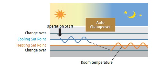 - Bascule automatiquement entre le mode de chauffage et le mode de refroidissement.