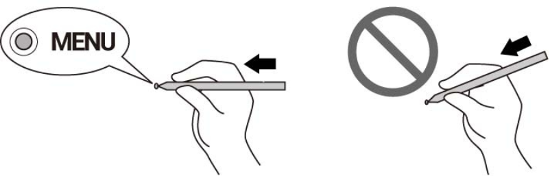 - Press [MENU] button as shown in the following figure. Use the tip of a ballpoint pen or other small object.