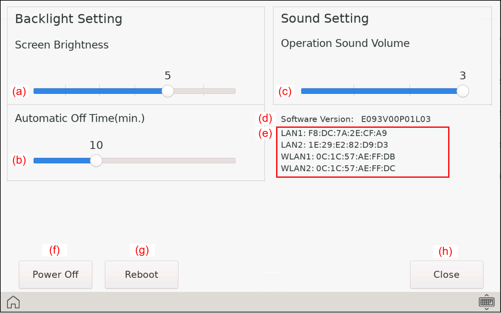 To turn off the AIRSTAGE Edge Controller, tap the [Power Off] button (f).