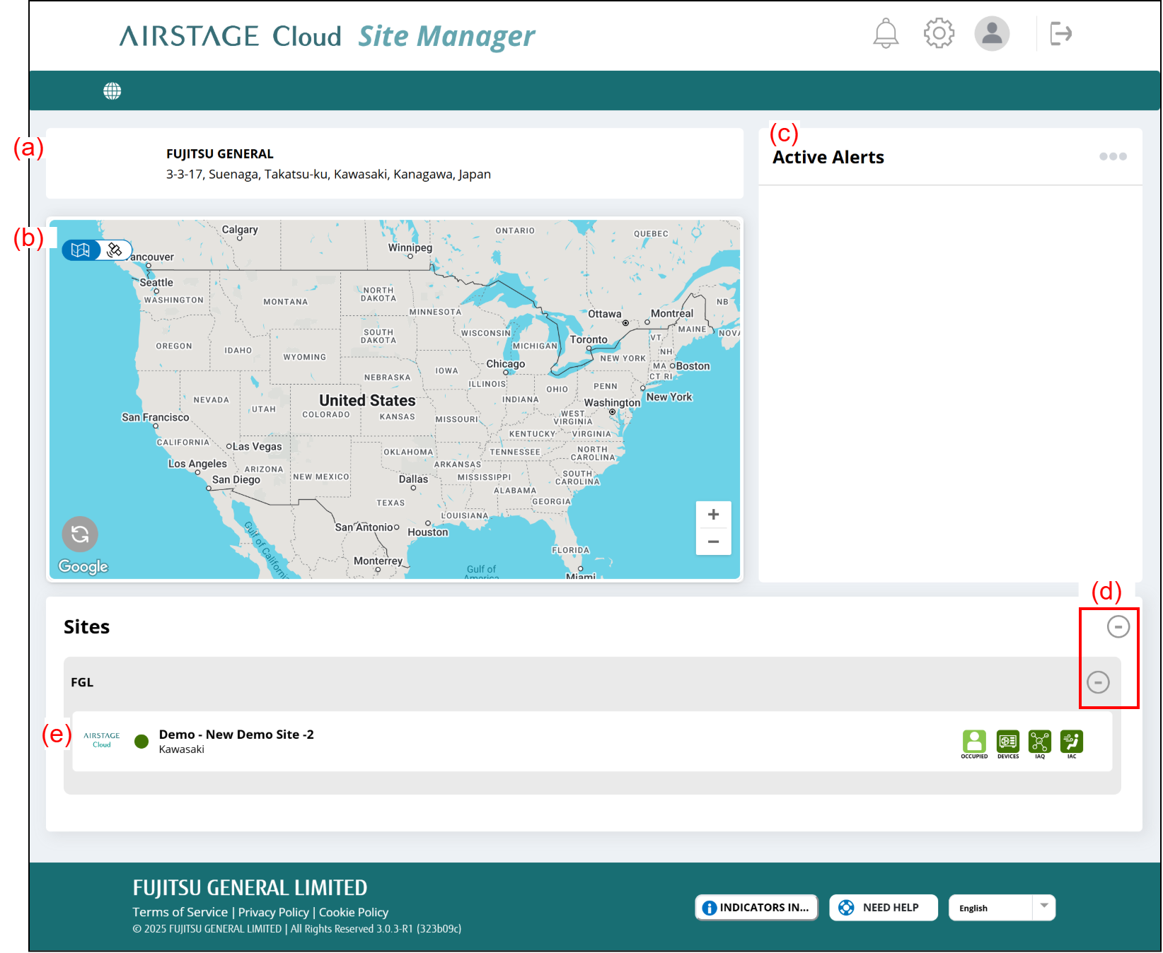 When selecting the Site icon on the map, the "Site Dashboard" screen will appear.