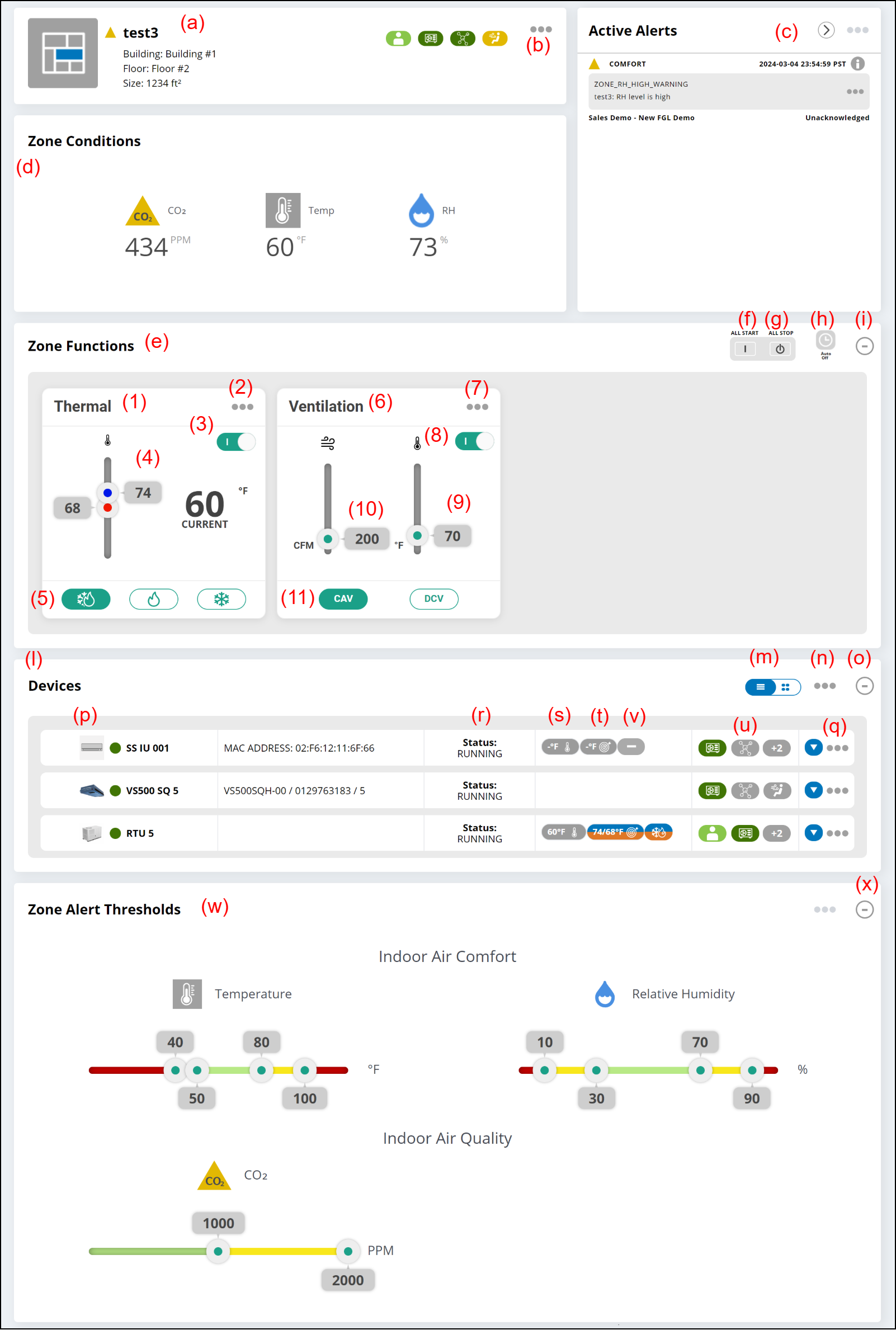 Red: CriticalAn alert appears on the "Active Alerts" area when the Zone condition reaches the Middle or Critical severity level.