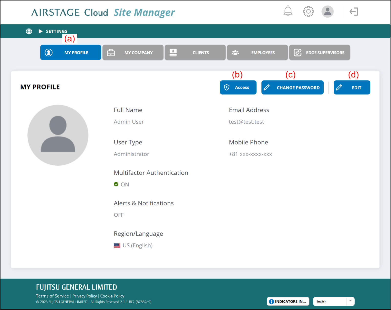 | (d) | [EDIT] button | To edit your profile, select the button. Refer to "Edit your profile" for details. |