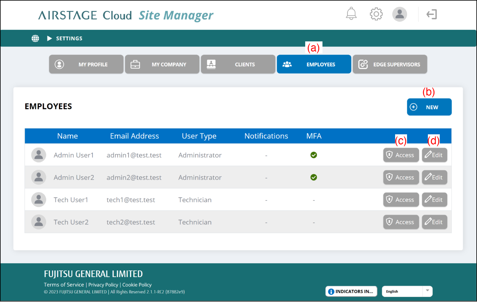 The "Employees" screen will be displayed and you can check the list of the employees.Select the button (b) to (d) as your purpose.