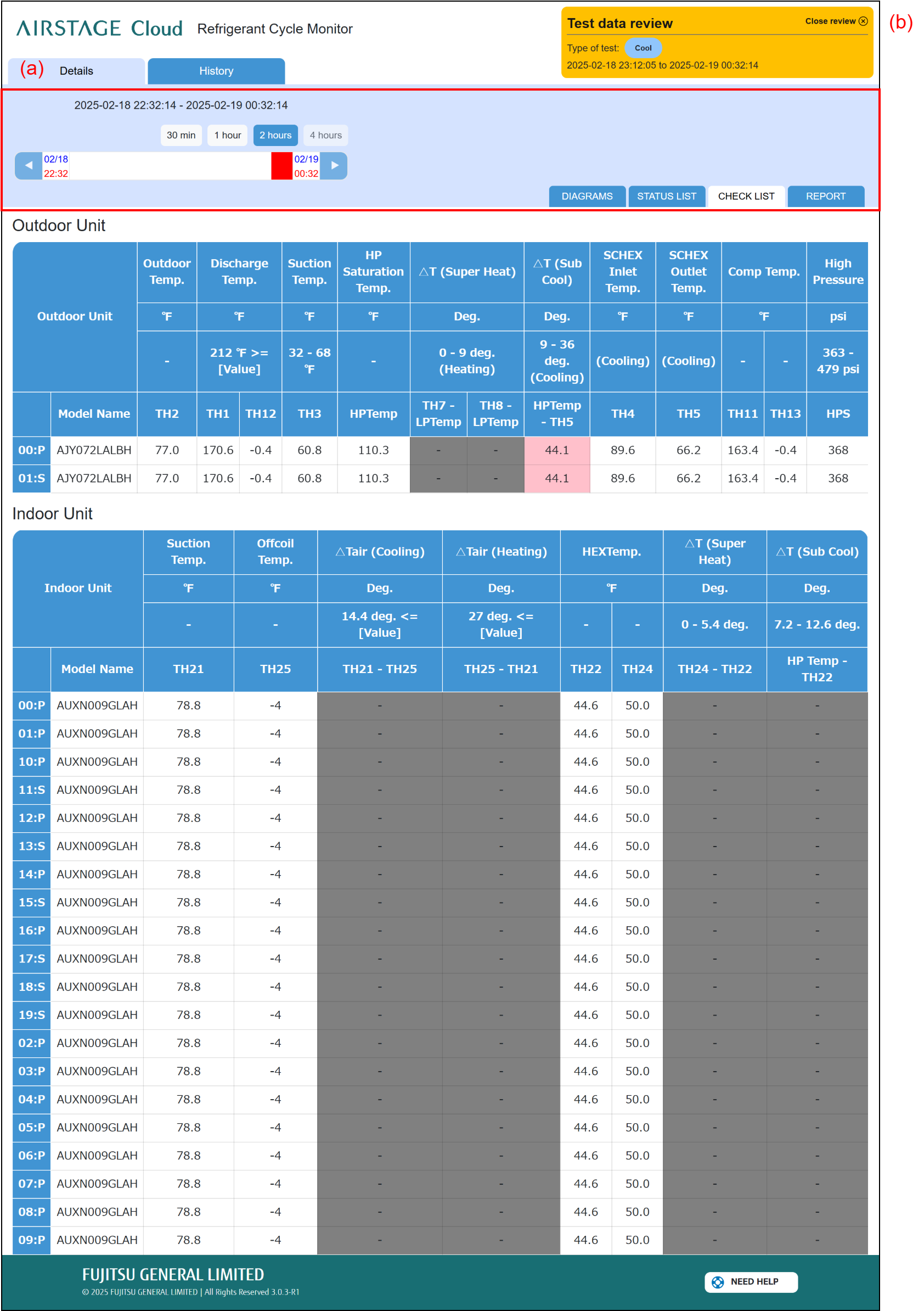 Tap the "View" button to check the state of the refrigeration cycle during the test execution time. (A separate browser tab opens.)