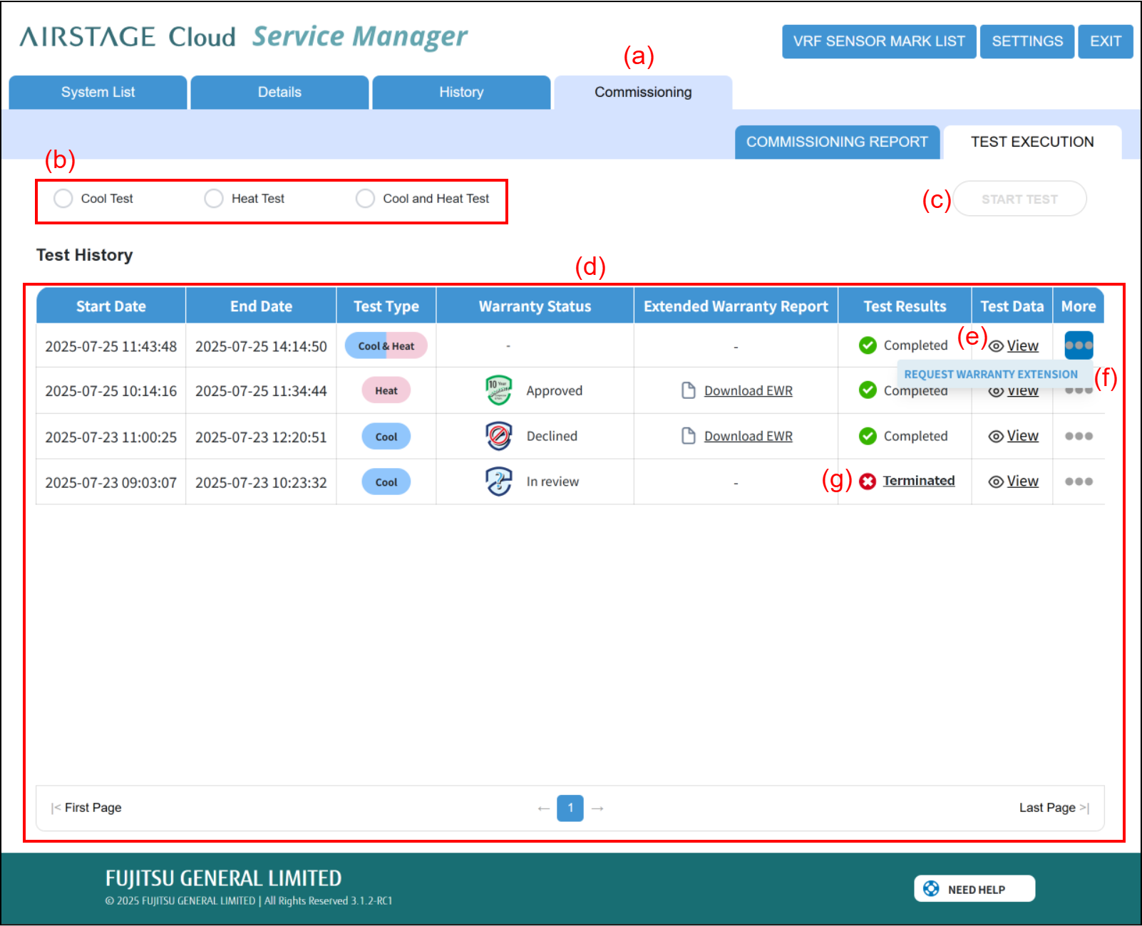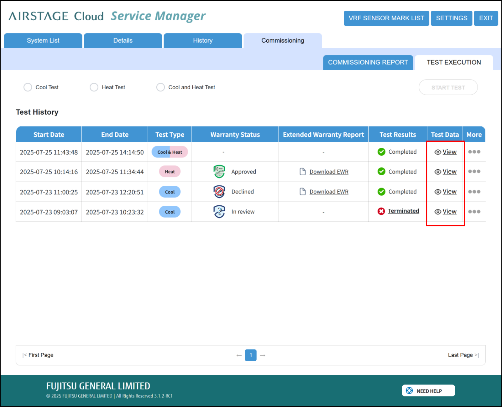 In addition, by requesting the Commissioning Manager to review Test Results, the data for extended warranty can be shared.