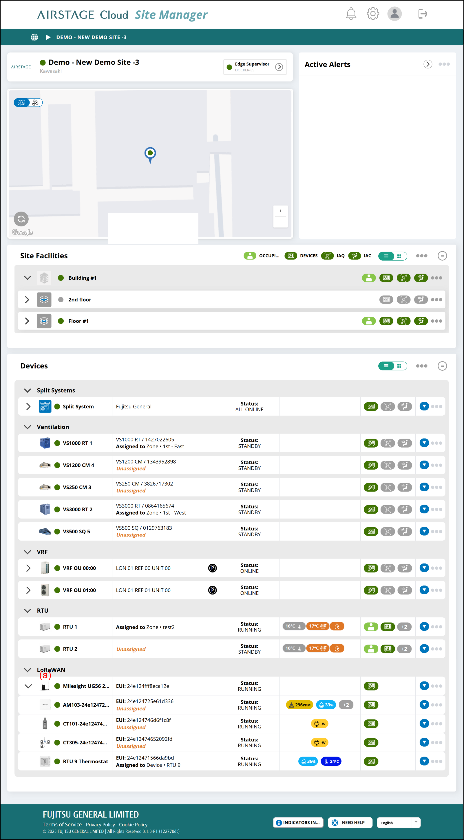 Select LoRaWAN Gateway (a) on the Site Dashboard to go to the LoRaWAN Dashboard.
