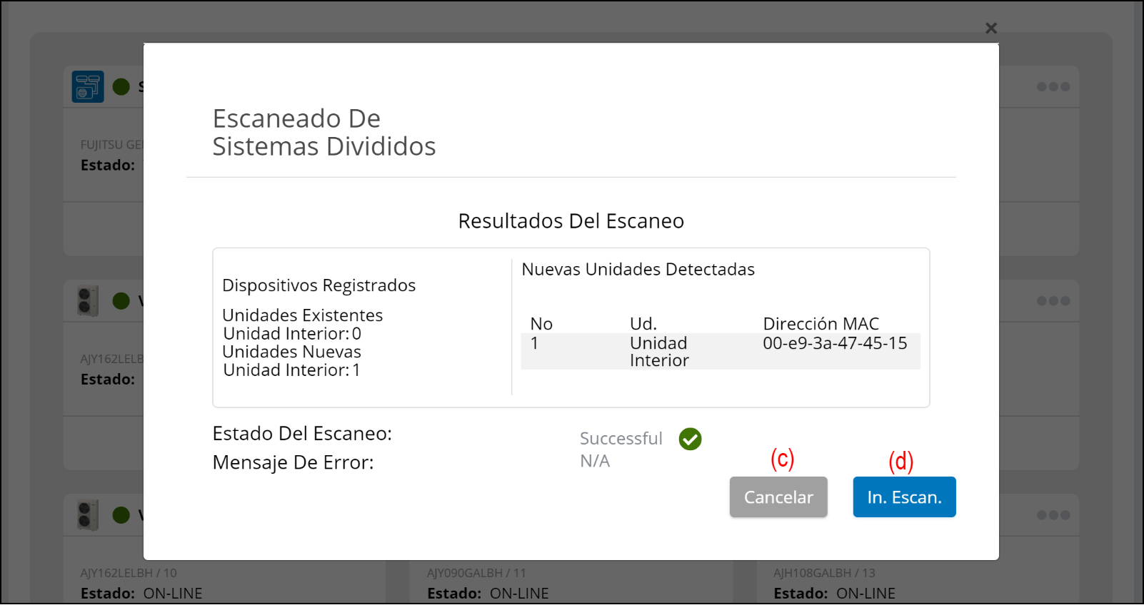 - Seleccione “ESCANEADO DE SISTEMAS DIVIDIDOS” (b).