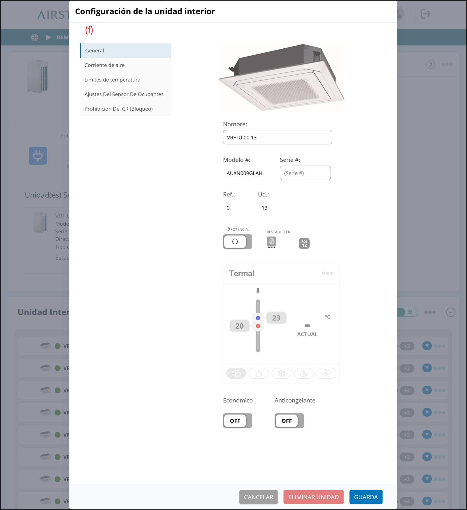 Cuando se muestra esta ventana, solo se visualizan los ajustes básicos. Para comprobar y cambiar los ajustes detallados, toque el menú. Consulte “Cambio de ajustes o eliminación de unidades interiores” para más detalles.