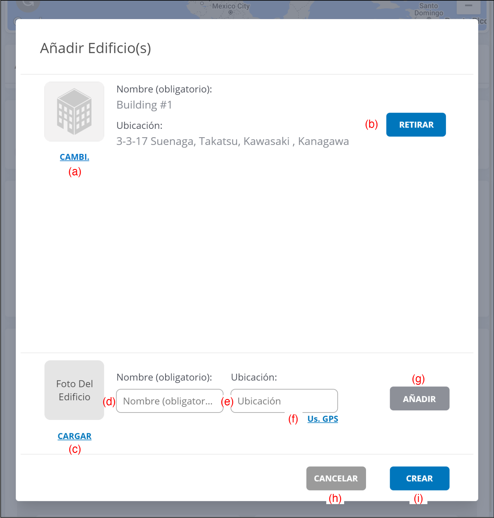 - Seleccione [AÑADIR EDIFICIO] en el menú de enlace (a) de la pantalla “Panel de control del sitio”.
