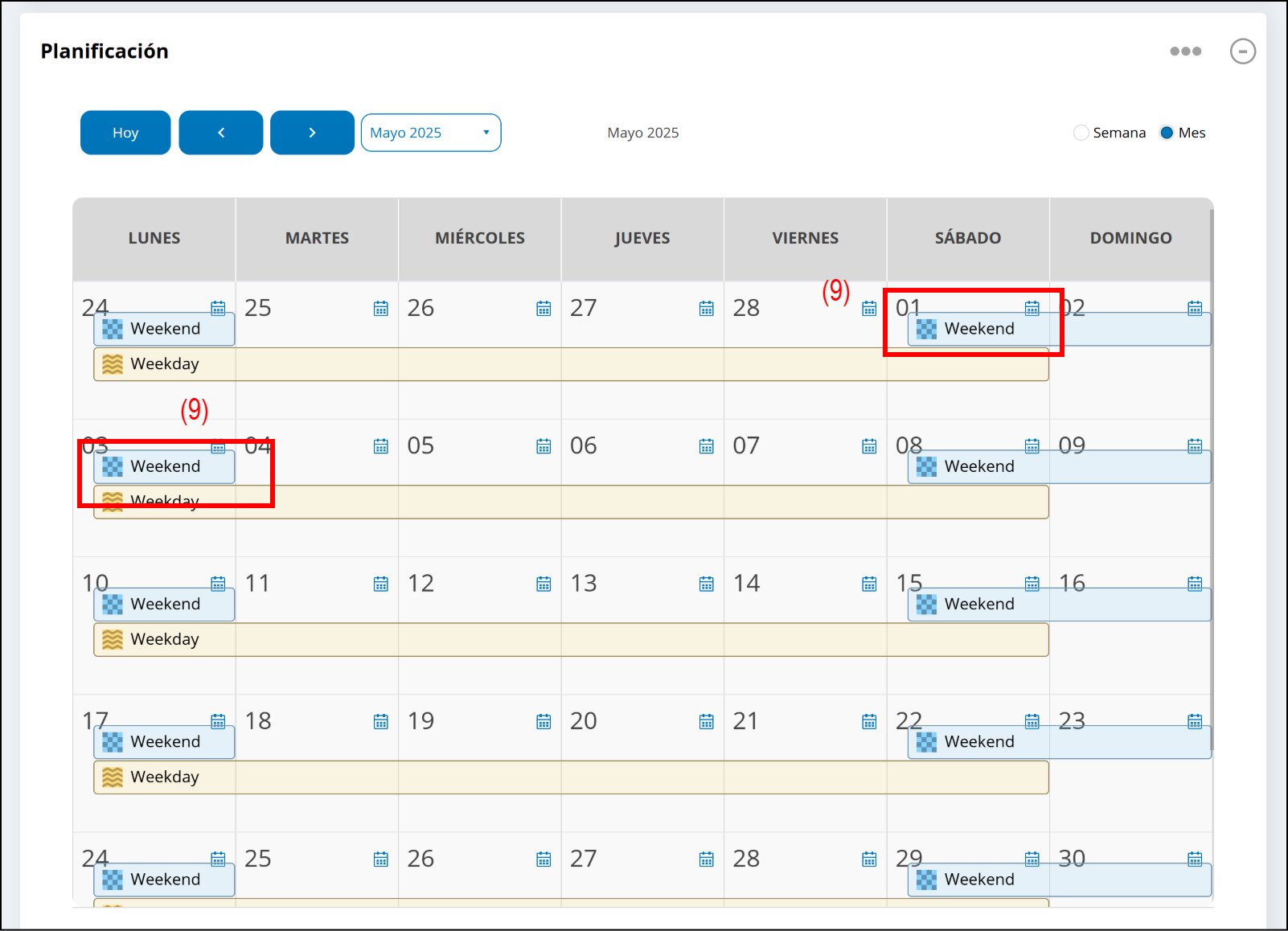 (9) El programa de horario se muestra hasta la fecha de finalización, por lo que se muestra solapado con la siguiente fecha de inicio del programa.