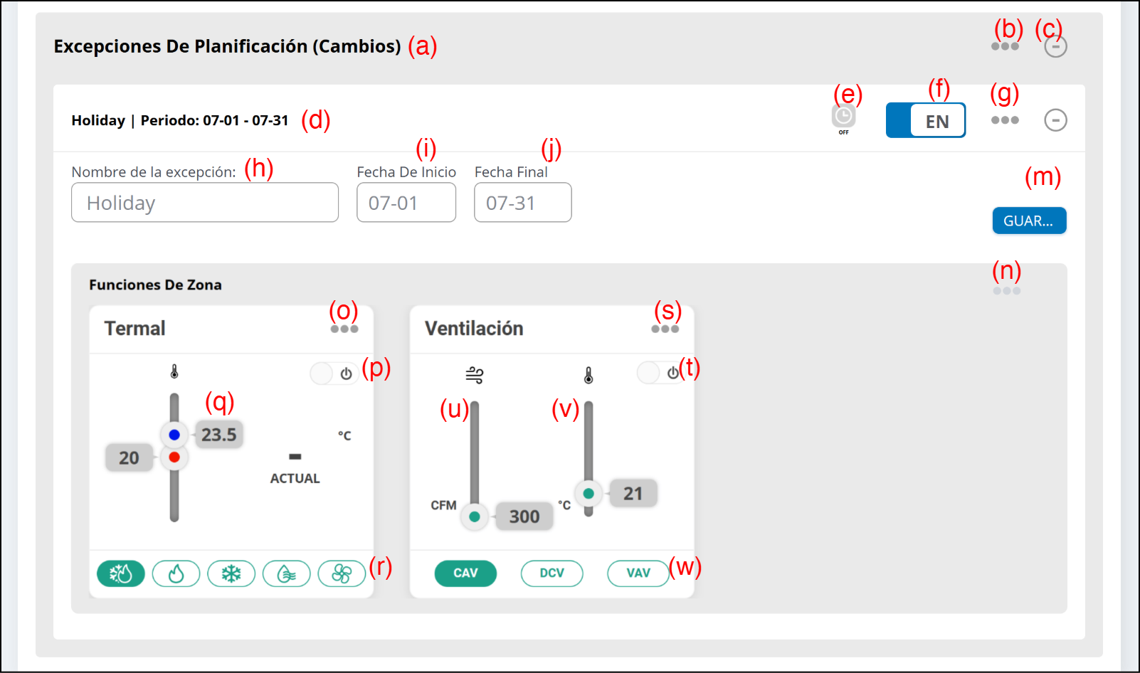 Establece la activación/desactivación para el dispositivo que puede ajustar la ventilación registrada en la Zona.