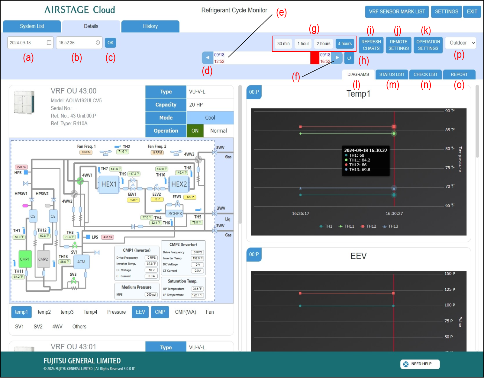 | Capacity | Muestra la capacidad de la unidad exterior. (*2) La visualización de las unidades es [HP] o [t(ton)], [kW]. |