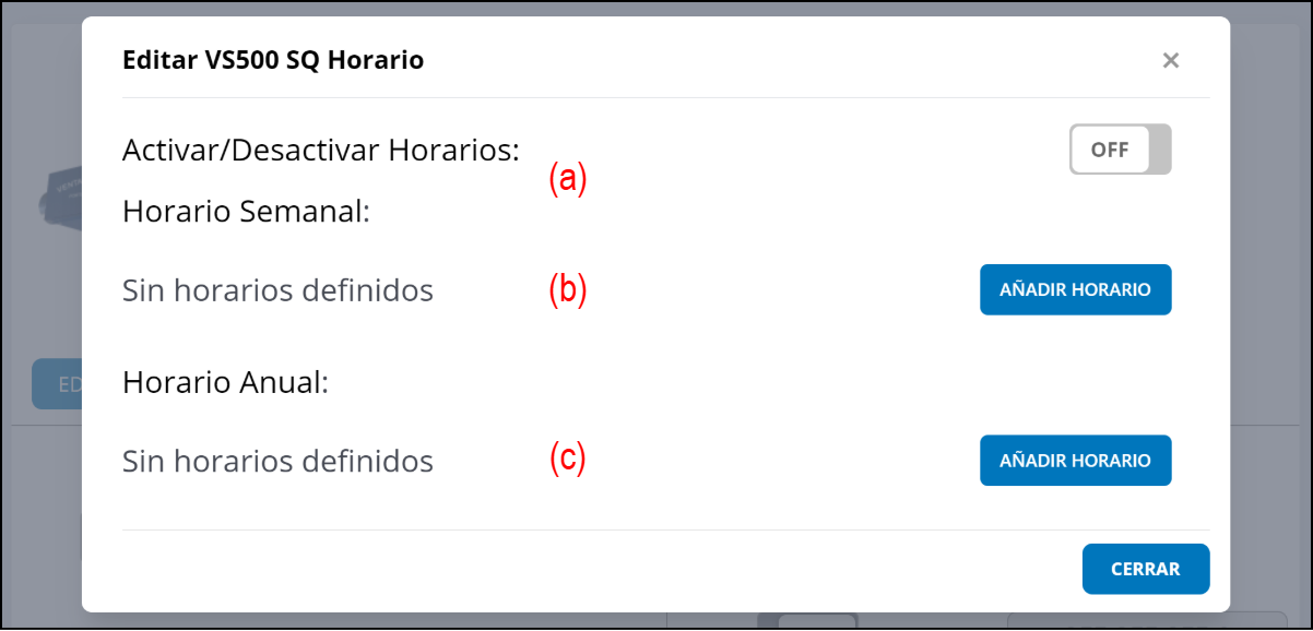 Haga clic en el botón [EDITAR HORARIO] en la configuración del ventilador.