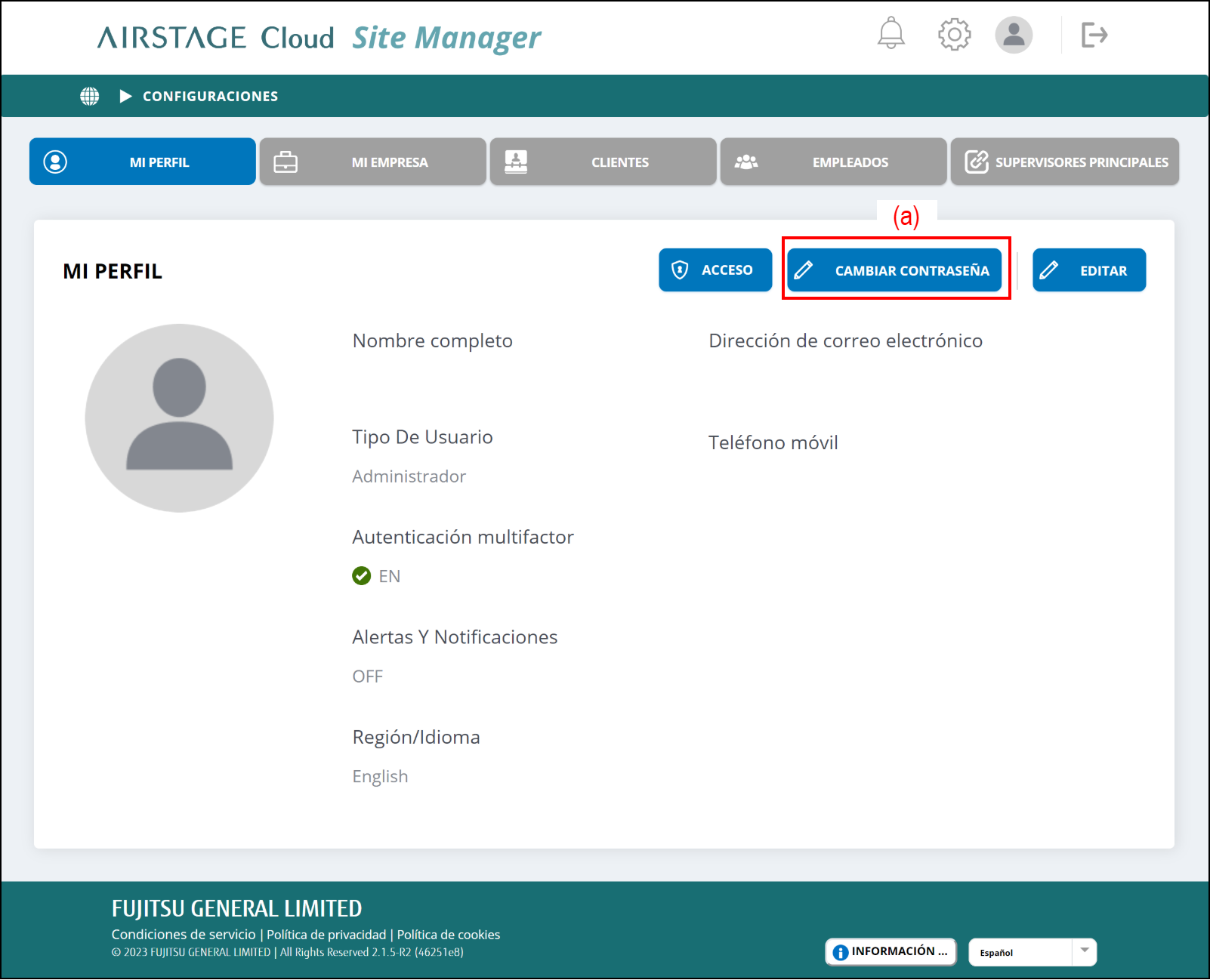 Seleccione el botón (a) en la pantalla “MI PERFIL”.