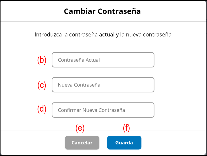 Si desea cerrar la ventana sin cambiar la contraseña, seleccione el botón (e).