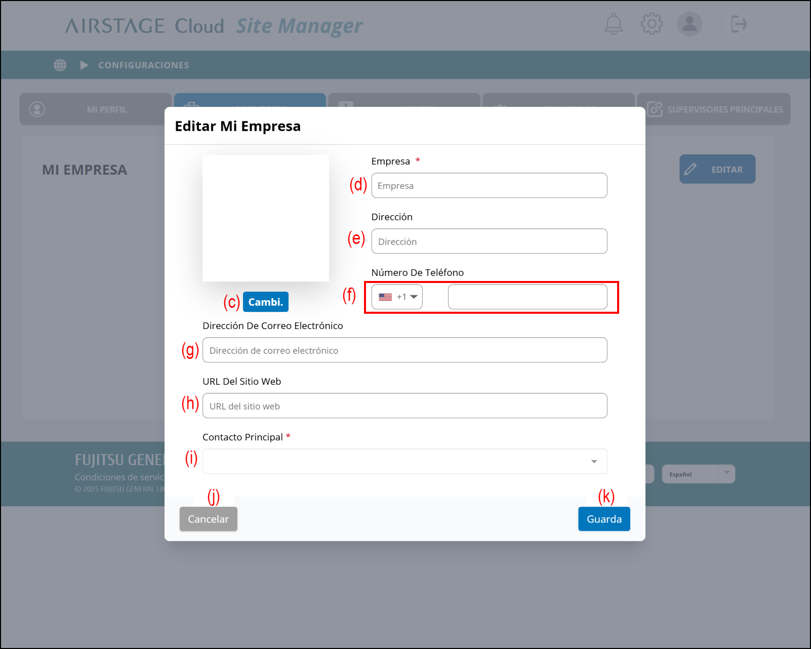 Si desea cerrar la ventana sin guardar los cambios, seleccione el botón (j).