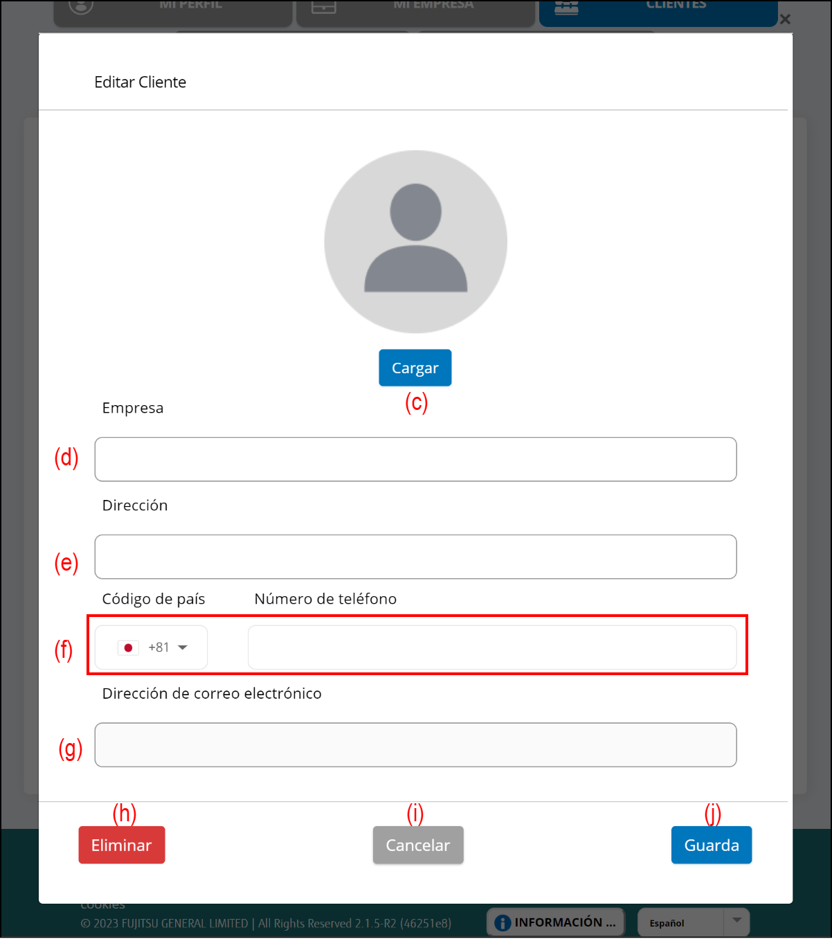 Si desea borrar el cliente, seleccione el botón (h).