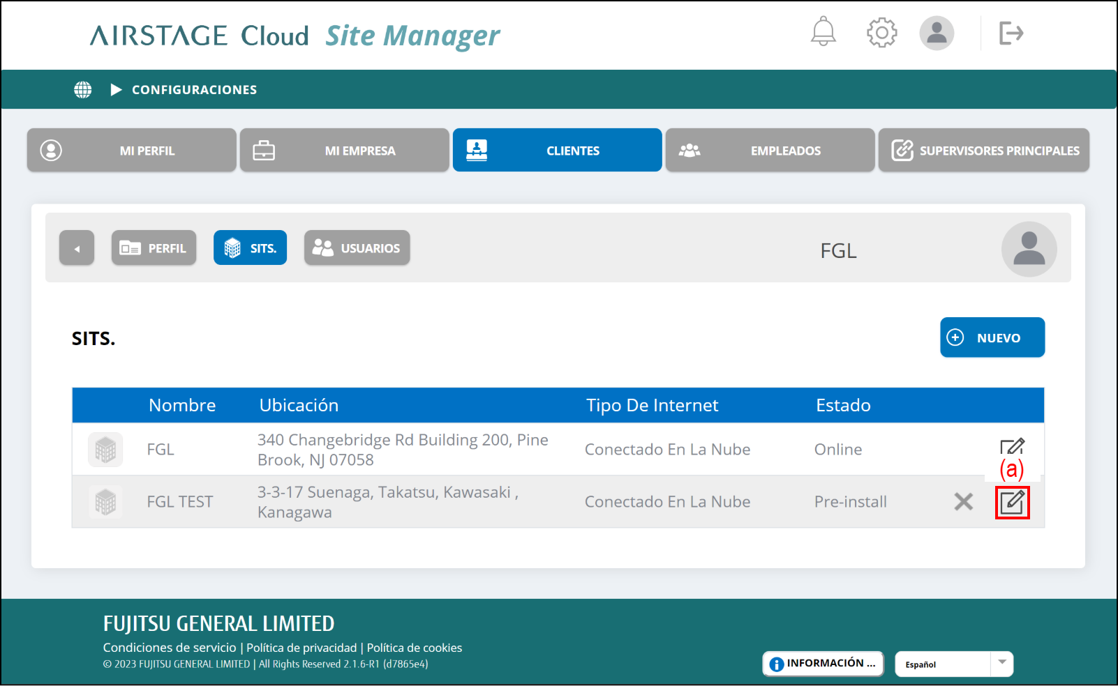- Seleccione el botón (a) en la pantalla “SITS.” de los detalles del cliente.